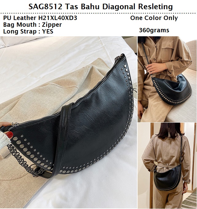 SAG8512 Black Tas Bahu Diagonal Resleting